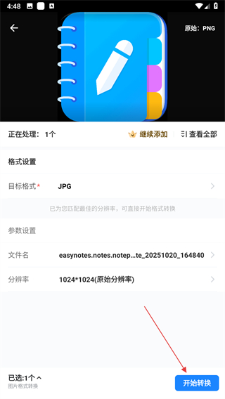3、在格式設(shè)置界面,選擇想要轉(zhuǎn)換的格式之后點擊下方開始轉(zhuǎn)換。