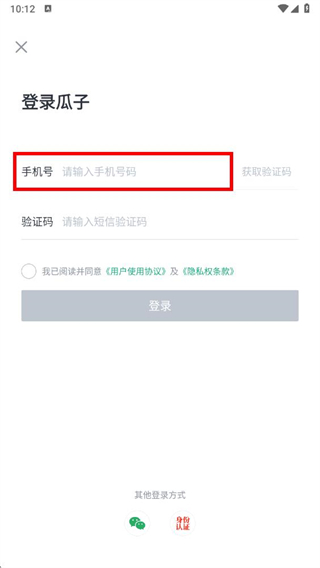 2、在登錄頁(yè)面,點(diǎn)擊手機(jī)號(hào)輸入框,輸入手機(jī)號(hào)。