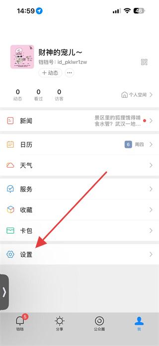 2、在個(gè)人頁面中找到設(shè)置選項(xiàng)并點(diǎn)擊,進(jìn)入包含各類賬號(hào)及應(yīng)用配置的設(shè)置頁面。