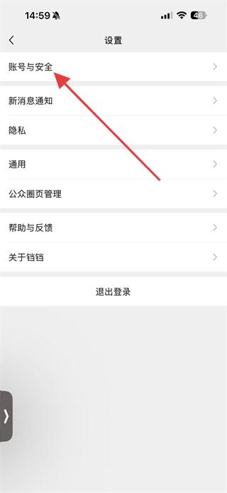 3、在設(shè)置頁面中找到賬號(hào)與安全選項(xiàng)并點(diǎn)擊,進(jìn)入管理賬號(hào)安全相關(guān)功能的頁面。