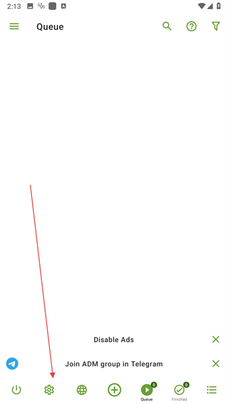 1、打開ADM應用,點擊底部的齒輪狀設置圖標。