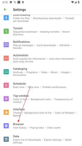 2、在設置界面中,找到并點擊Browser選項。