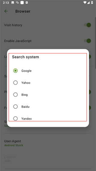 4、在彈出的搜索系統(tǒng)選擇窗口中,選擇想要的搜索系統(tǒng)即可。