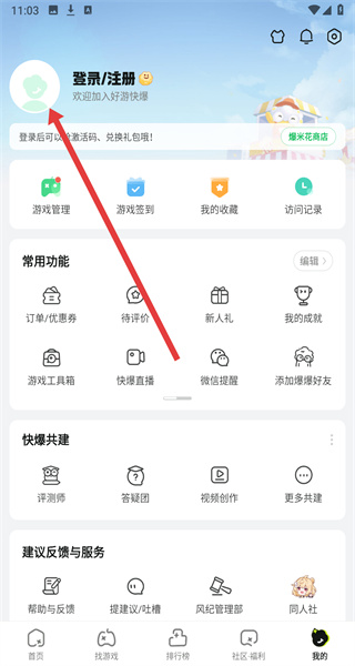 2、在進入到個人主頁后,可以點擊頭像區(qū)域,進行登錄。
