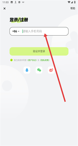 3、在跳轉(zhuǎn)到登錄頁面中時,可以點擊輸入框填寫手機號后,點擊驗證并登錄。
