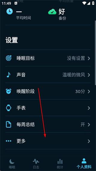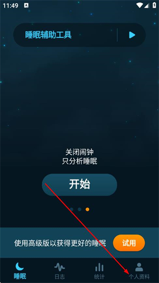 1、打開Sleep Cycle APP,點(diǎn)擊導(dǎo)航欄個(gè)人資料。