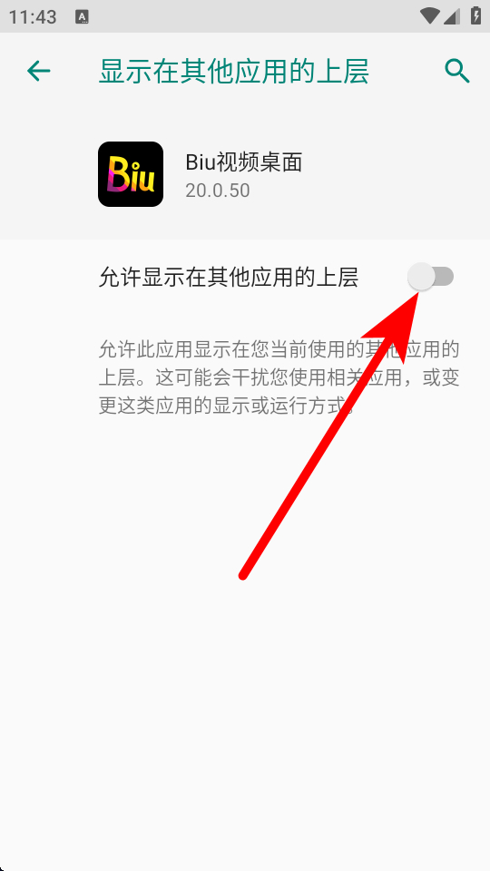 4、完成開(kāi)關(guān)開(kāi)啟后,即可成功設(shè)置Biu視頻桌面的懸浮權(quán)限。