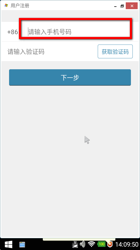 3、進(jìn)入用戶(hù)注冊(cè)界面后,在對(duì)應(yīng)框中輸入手機(jī)號(hào)碼。