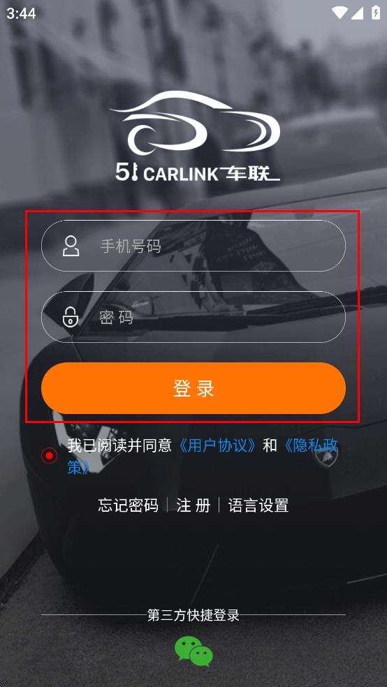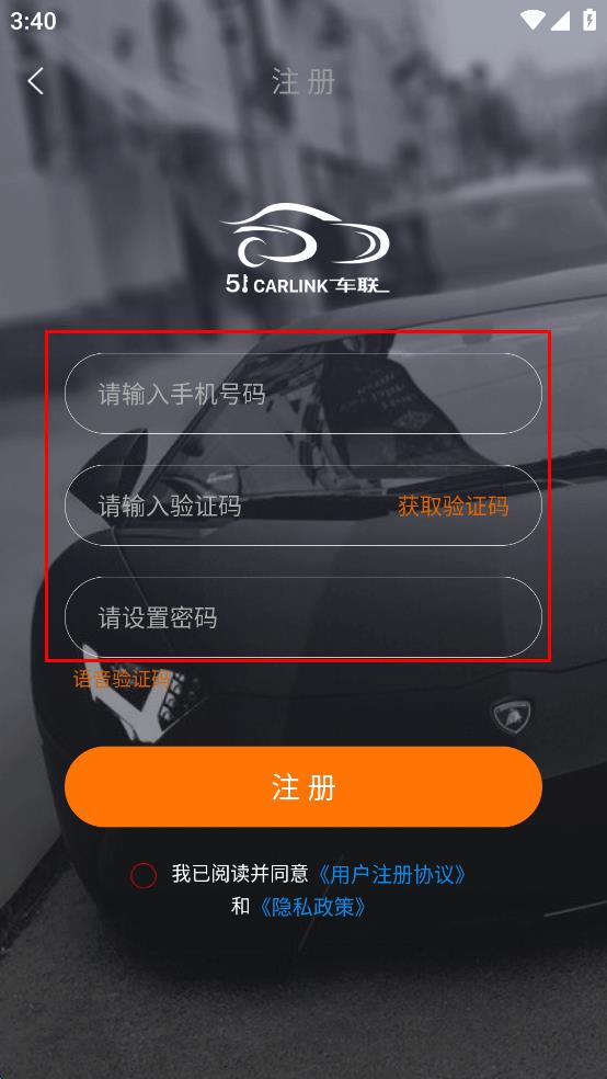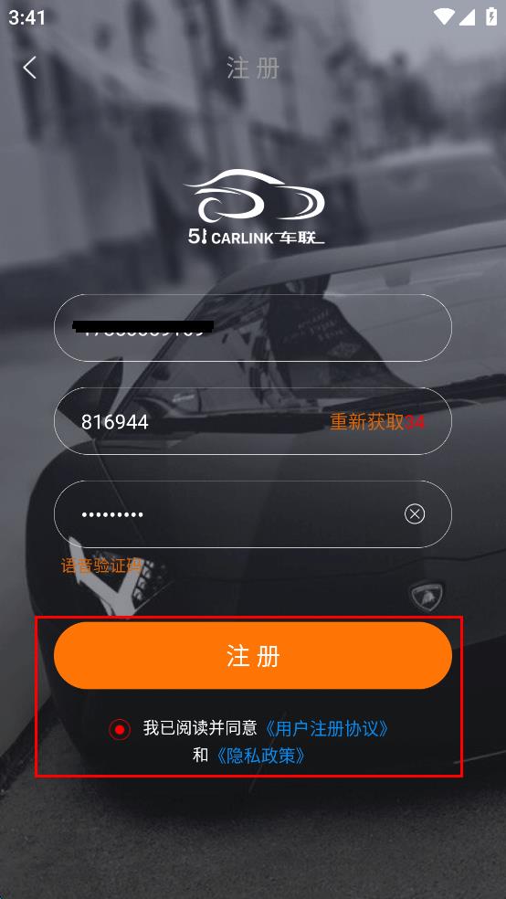 1、打開(kāi)51車(chē)聯(lián)APP,在登錄頁(yè)面點(diǎn)擊注冊(cè)。