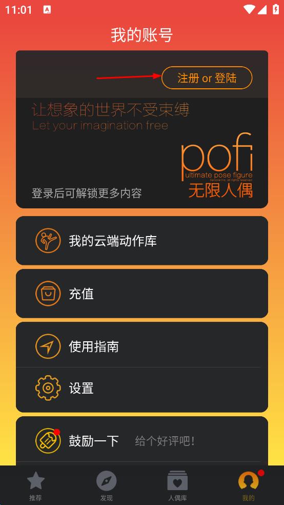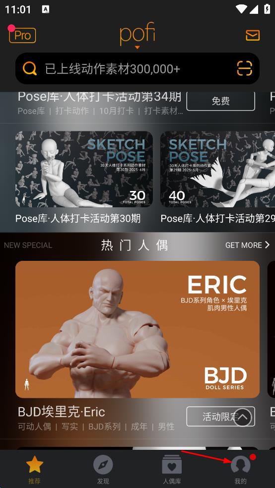 1、打開(kāi)Pofi無(wú)限人偶APP,在推薦頁(yè)面點(diǎn)擊右下角我的。