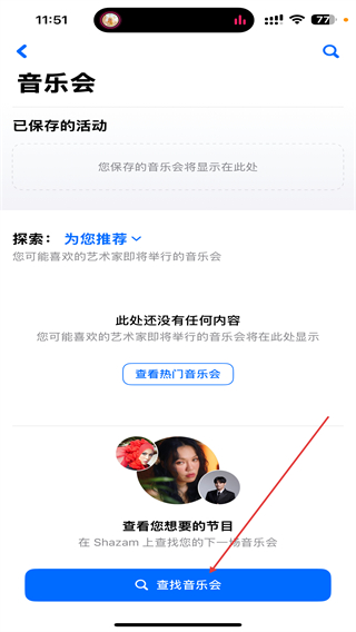 2、進(jìn)入音樂(lè)會(huì)的界面內(nèi),點(diǎn)擊下方查找音樂(lè)會(huì)的功能按鈕。