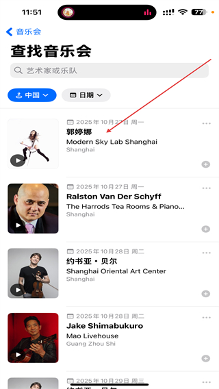 3、選擇并點(diǎn)擊想要查找的音樂(lè)會(huì)名稱(chēng),即可查看詳情內(nèi)容。