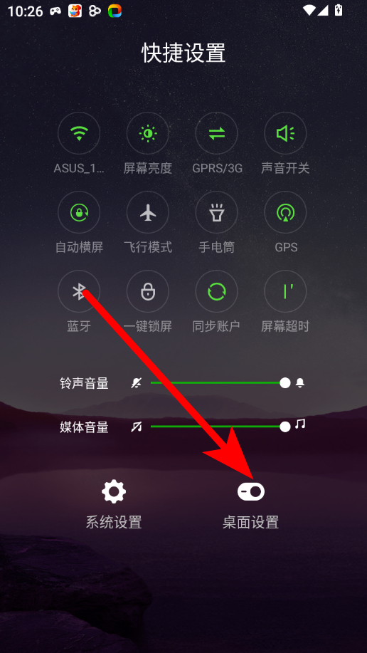2、在快捷設置界面,點擊桌面設置選項,進入桌面設置頁面。