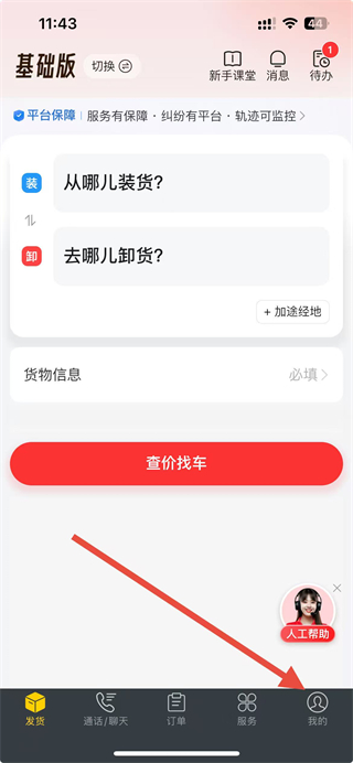 1、在貨車幫貨主app界面點擊我的選項,進入個人相關頁面。
