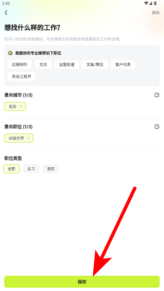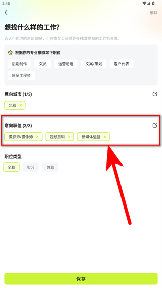 4、選好新的意向職位后,點擊底部保存按鈕,完成求職信息修改。