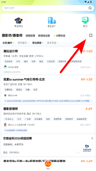 1、打開應(yīng)屆生求職APP,點擊右上角的編輯圖標(biāo),進(jìn)入求職信息編輯頁面。