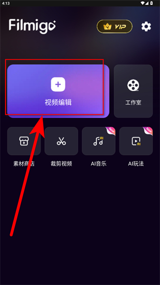 1.打開Filmigo應(yīng)用,點(diǎn)擊視頻編輯按鈕。