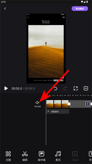 4.原聲關(guān)閉后,點(diǎn)擊右上角導(dǎo)出模式即可導(dǎo)出無原聲的視頻。