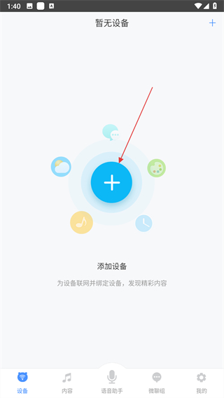 1、打開桃源互動app,點擊頁面中間的添加設備藍色加號按鈕。