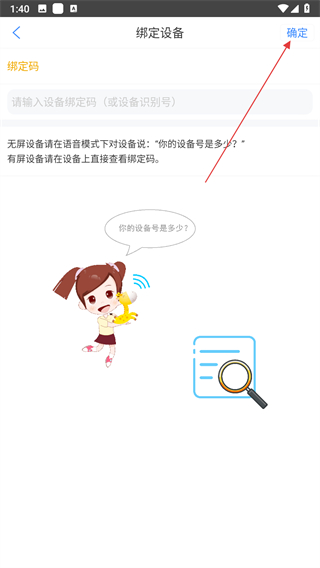 4、在綁定碼輸入頁面,輸入設備綁定碼,點擊確定按鈕即可。