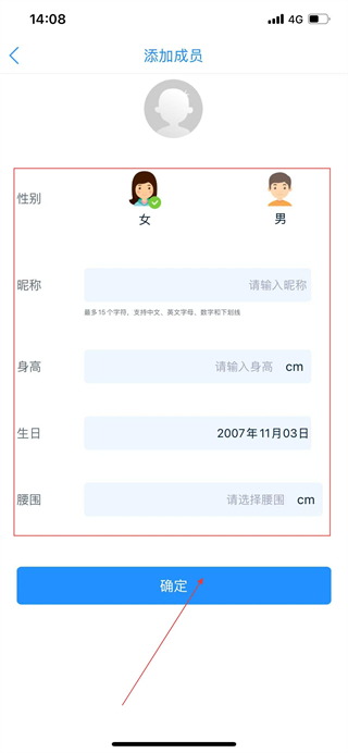 3、填寫家庭成員的信息后,點(diǎn)擊確定,即可完成家庭成員添加。