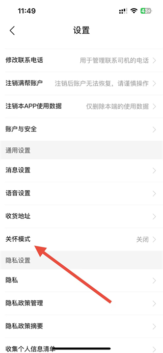 3、在設置頁面點擊關懷模式選項,進入關懷模式頁面。