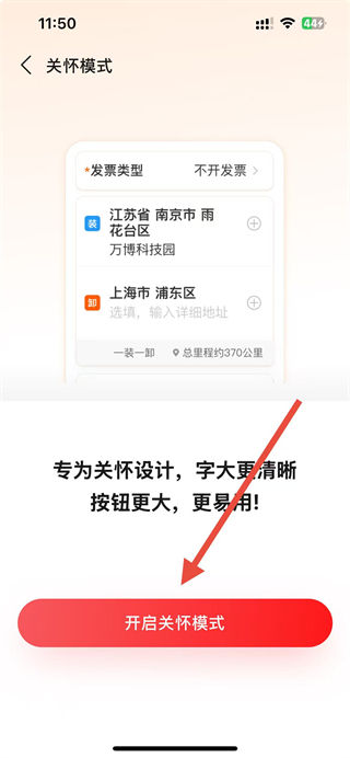 4、在關懷模式頁面點擊開啟關懷模式按鈕,即可開啟關懷模式。