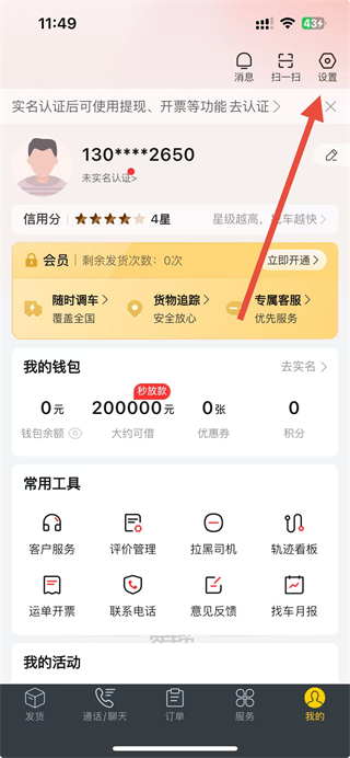1、在貨車幫貨主app界面點擊我的選項,進入個人相關頁面。