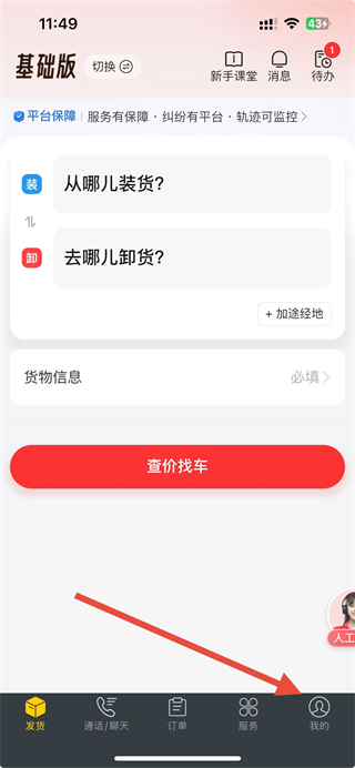 1、打開貨車幫貨主APP,點擊底部導航欄中的我的。