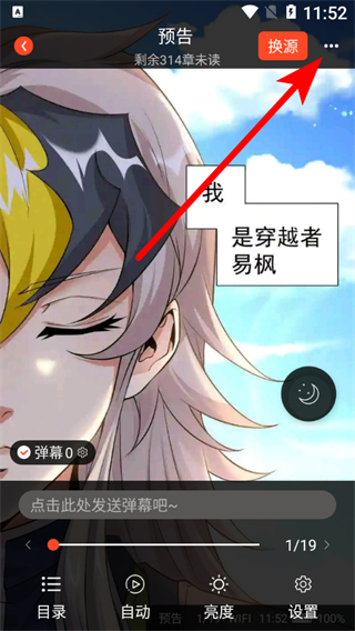 3、在漫畫閱讀界面,點(diǎn)擊右上角更多選項(xiàng),彈出功能菜單。