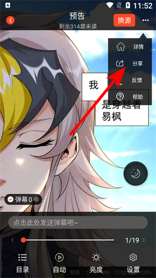 4、在功能菜單中,點(diǎn)擊分享選項(xiàng),即可將漫畫分享給別人。