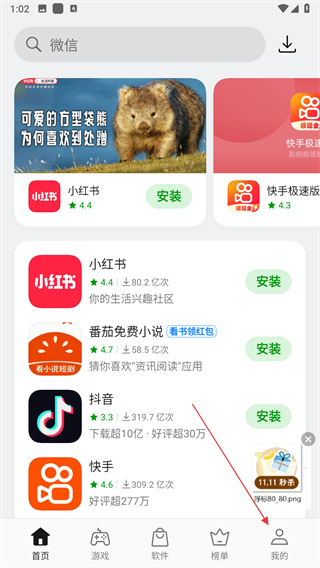 1、打開OPPO軟件商店,點(diǎn)擊右下角我的。