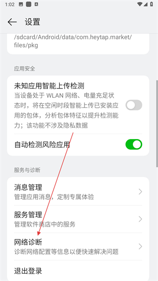 3、在設(shè)置頁面,點(diǎn)擊網(wǎng)絡(luò)診斷選項(xiàng)。