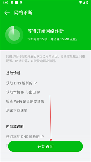 4、在網(wǎng)絡(luò)診斷頁面,點(diǎn)擊開始診斷。