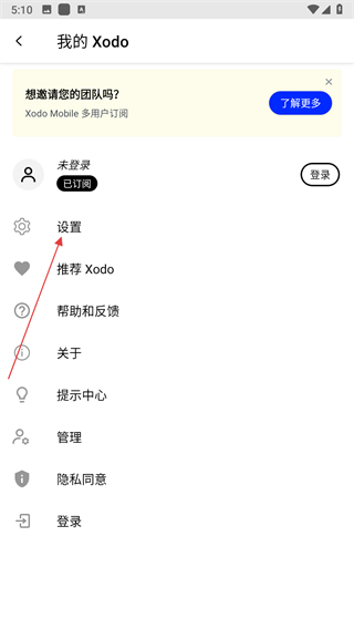 2、在我的Xodo頁面中,點擊設(shè)置選項,進(jìn)入詳細(xì)設(shè)置界面。