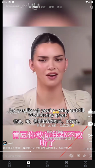 2、進入視頻播放的頁面內(nèi),點擊右側(cè)評論的功能圖標。