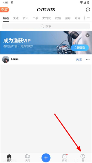 1、打開漁獲APP,點(diǎn)擊右下角我進(jìn)入個(gè)人頁面。
