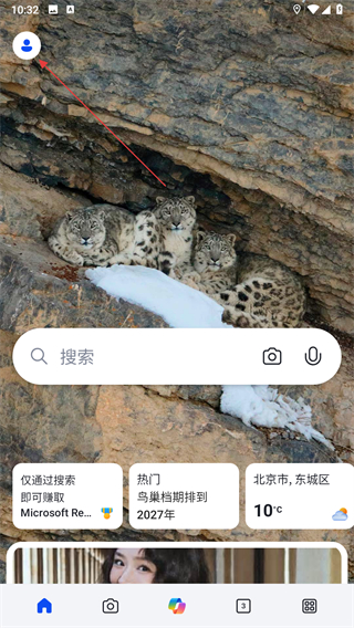 1、打開Bing應(yīng)用,點(diǎn)擊左上角的用戶圖標(biāo)。