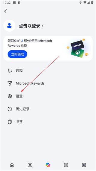 1、打開微軟必應(yīng)應(yīng)用,點(diǎn)擊底部導(dǎo)航欄最右側(cè)的九宮格圖標(biāo),進(jìn)入功能菜單界面。