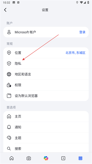 3、進(jìn)入設(shè)置頁面后,點(diǎn)擊隱私選項(xiàng)。