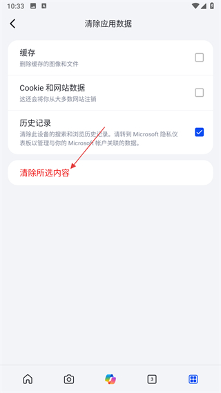5、勾選歷史記錄選項(xiàng),點(diǎn)擊清除所選內(nèi)容按鈕即可。