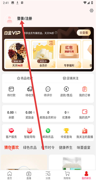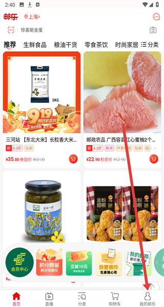 1、在進(jìn)入到應(yīng)用首頁后,可以點(diǎn)擊下方我的郵樂按鈕,進(jìn)入我的主頁。