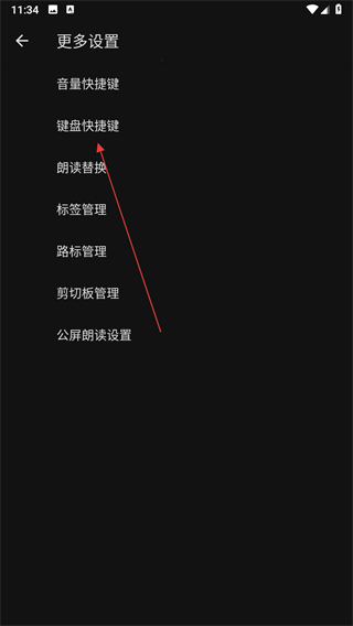 2、在更多設(shè)置頁面,點(diǎn)擊鍵盤快捷鍵選項(xiàng)。