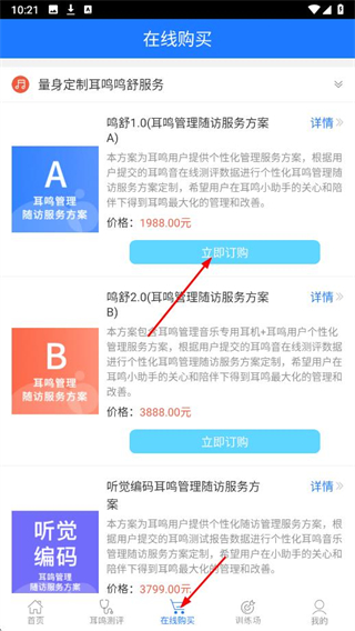 2、提供量身定制的耳鳴鳴舒服務(wù),如鳴舒1.0、鳴舒2.0、聽(tīng)覺(jué)編碼耳鳴管理隨訪(fǎng)服務(wù)方案等,用戶(hù)可根據(jù)需求在線(xiàn)訂購(gòu)個(gè)性化耳鳴管理服務(wù)。