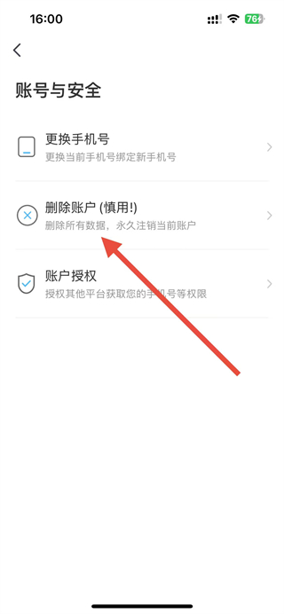 3、在賬號與安全頁面點擊刪除賬戶選項,進入注銷賬戶頁面。