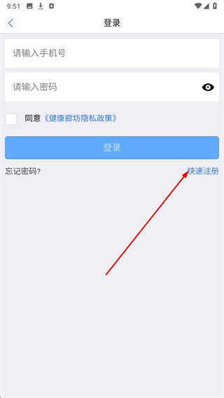 2、在登錄頁面,點(diǎn)擊快速注冊(cè)。