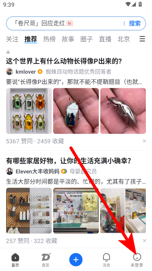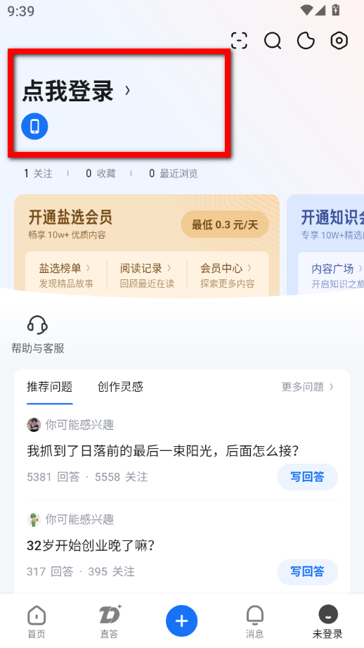 1、在知乎首頁(yè),點(diǎn)擊右下角未登錄選項(xiàng),進(jìn)入登錄界面。