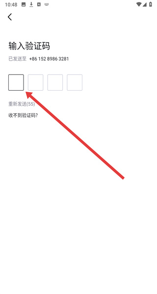 4、跳轉到“輸入驗證碼”頁面,將收到的驗證碼依次輸入對應方框,完成得物APP的登錄流程。