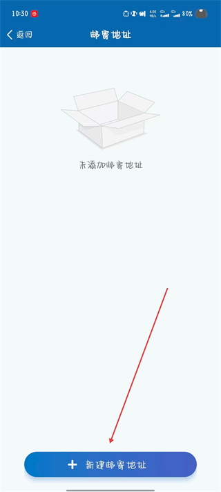 3、進入郵寄地址頁面后,點擊新建郵寄地址。