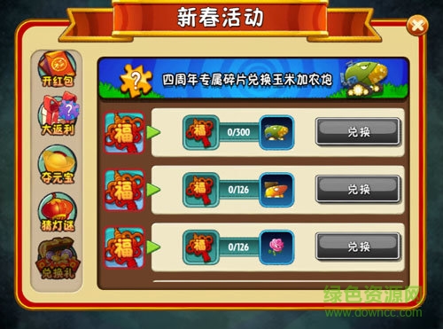 參與各類活動(dòng),可以獲得“春節(jié)專屬碎片”是用碎片可以兌換各類植物、植物碎片、裝扮、裝扮碎片等豐富的獎(jiǎng)勵(lì)。終極兌換獎(jiǎng)勵(lì)為橙色植物。